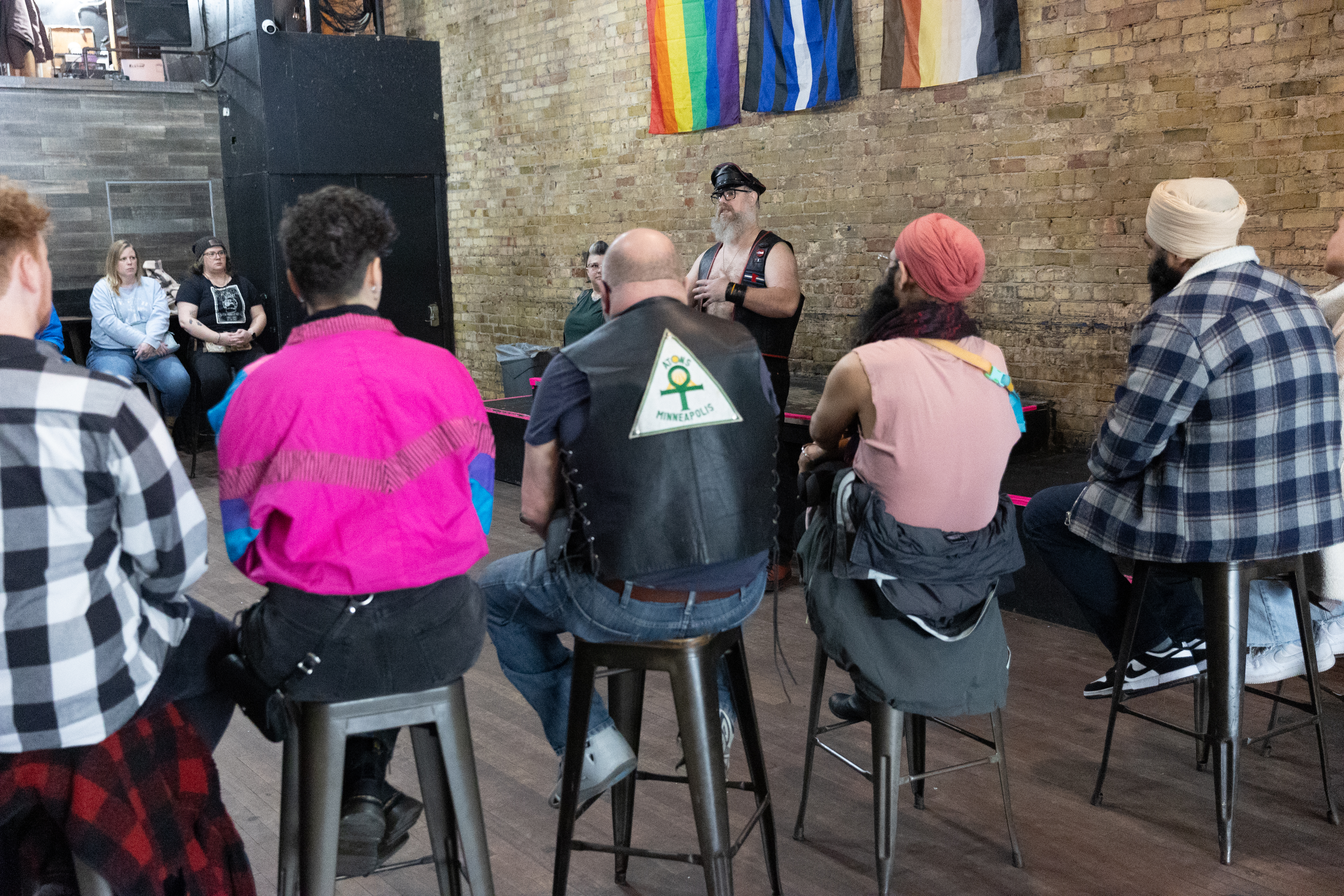 This free event helped raise funds for the design, creation, and ceremonial unveiling of the new Leather Pride Flag. Attendees also had the chance to support the Flag Fund by purchasing the 2025 “Our Flag Is Bigger” dog tags and MNLP patches.